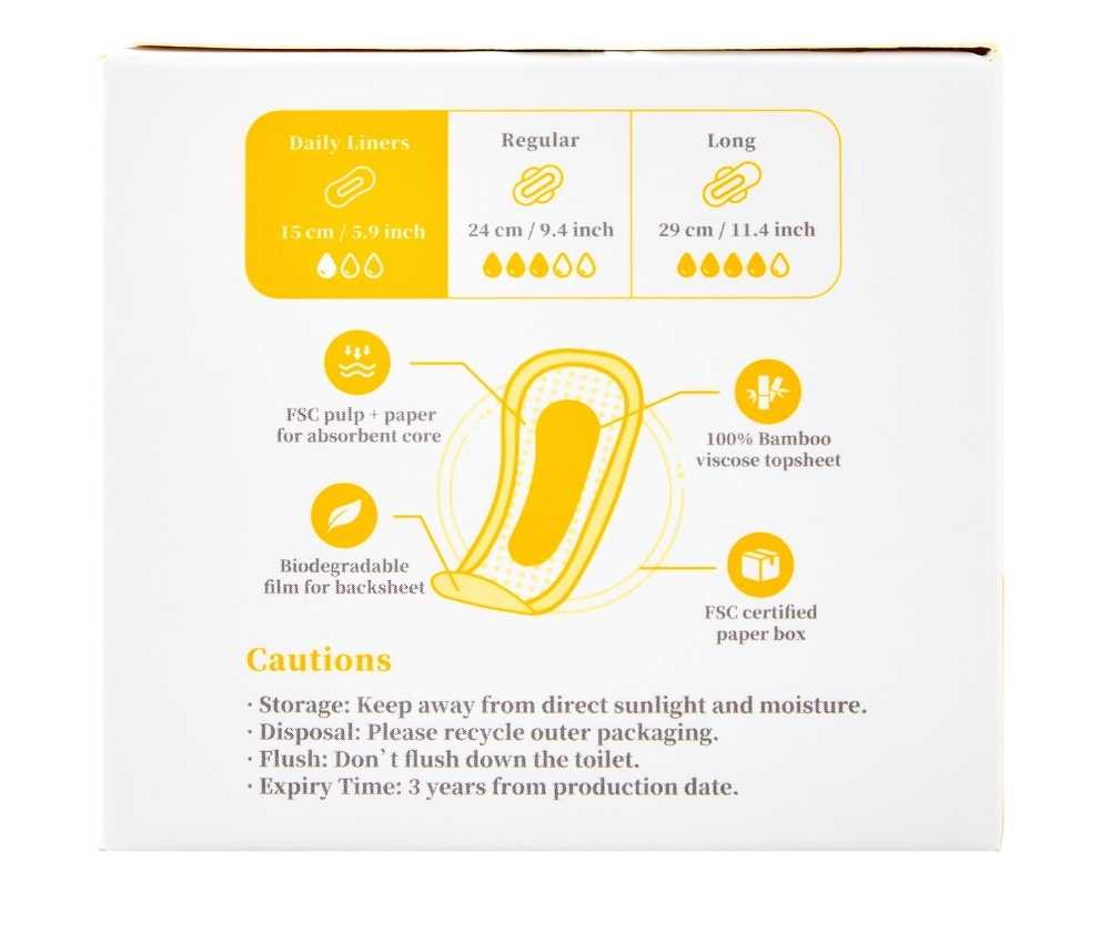 - No Weird Smells: By using naturally antibacterial bamboo viscose on the top sheet, our liners are odourless and breathable.