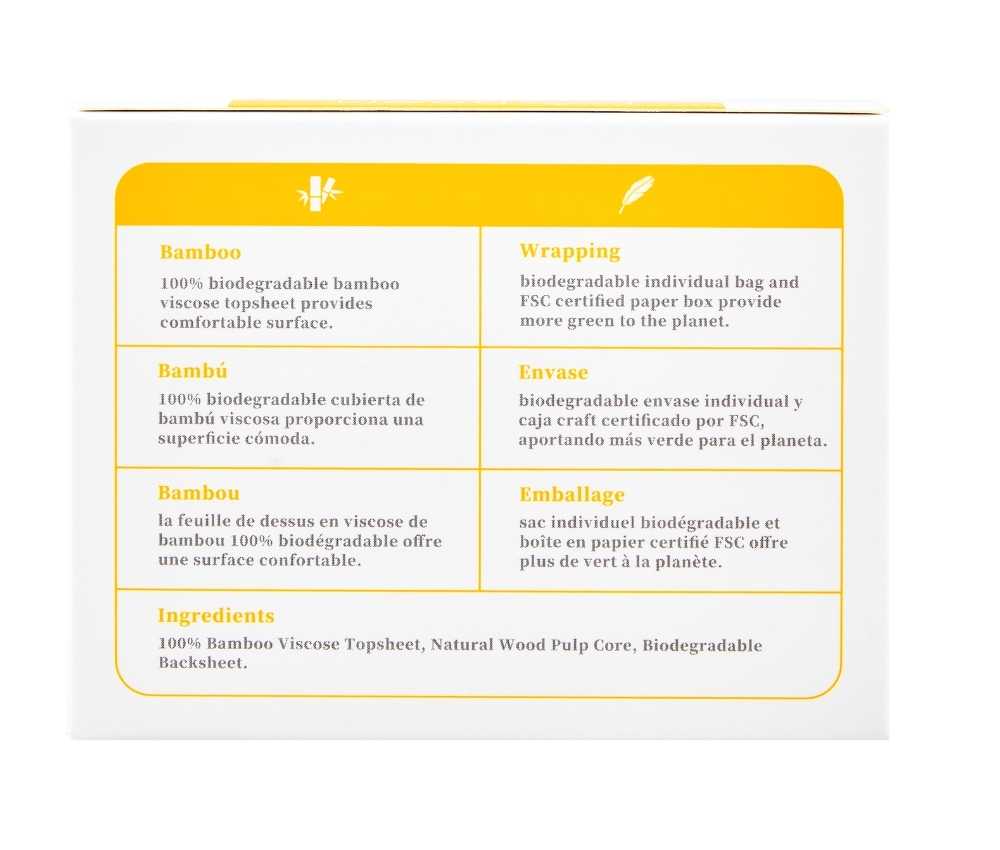 - Bamboo Viscose Topsheet: 100% biodegradable bamboo viscose top sheet provides a comfortable surface.