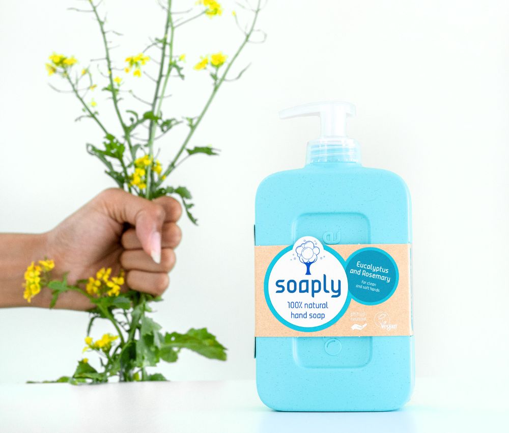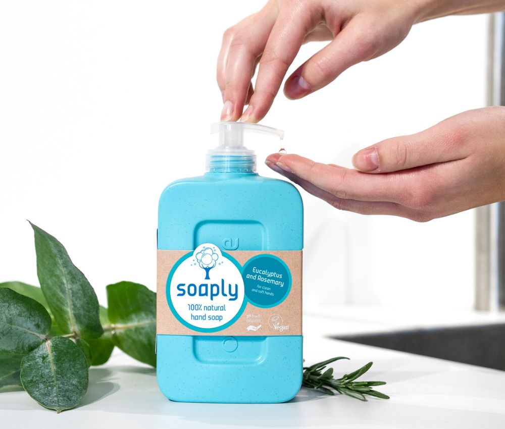 Soaply 100% natural hand soap with 'Eucalyptus and Rosemary' scent makes your hands naturally clean nd soft.